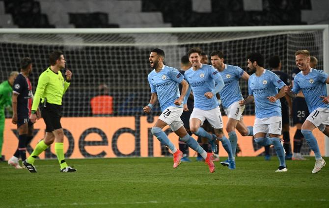 Pirmo įvarčio ilgai laukti nereikėjo. 11-ąją rungtynių minutę Riyadas Mahrezas taikliu smūgiu į tolimąjį vartų kampą išvedė „Man City“ ekipą į priekį rezultatu 1:0. Po kelių minučių Paryžiaus klubas turėjo galimybę išlyginti rezultatą, tačiau proga nepasinaudojo – Marcos Aoás Corrêa. Jo smugiuotas kamuolys sudrebino vartų konstrukciją, bet tikslo nepasiekė.