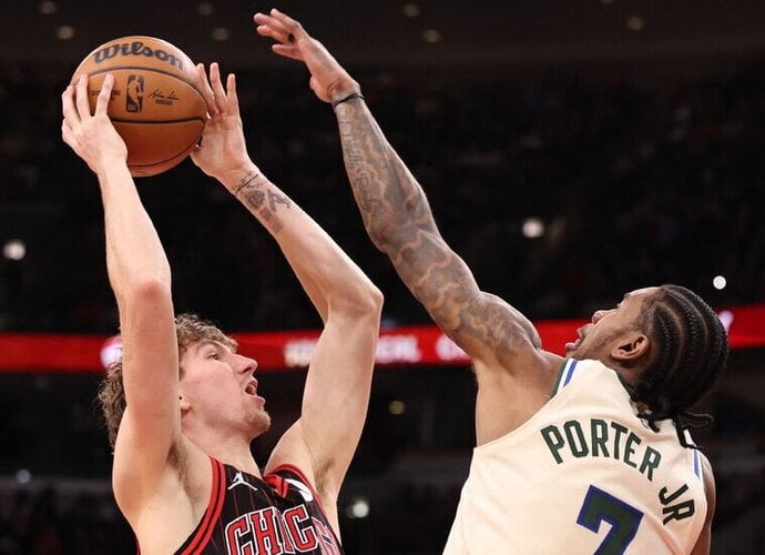 „Bulls” statistika: Nikola Vučevičius (7 atk. kam.) ir Coby White'as (4/8 trit.) po 16, Joshas Giddey 13 (7 atk. kam., 9 rez. per.), Ayo Dosunmu 11 (0/3 trit.), Zachas Collinsas (10 atk. kam.) ir Isaacas Okoro po 10, Matas Buzelis 8.