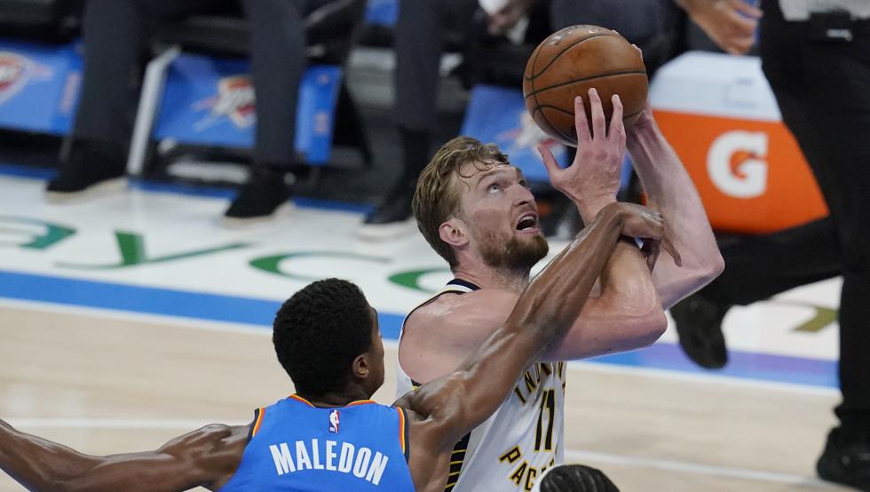 Indianos „Pacers“ komanda su Domantu Saboniu priešakyje svečiuose rezultatu 152:95 (42:29, 40:17, 44:24, 26:25) sutrypė Oklahomos „Thunder“ krepšininkus ir buvo per plauką nuo didžiausios pergalės NBA istorijoje.