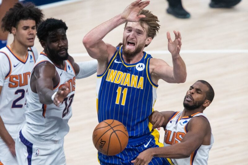 Tuo metu Domantas Sabonis vidutiniškai šiame sezone renka po 20,2 taško, atkovoja po 11,2 kamuolio ir atlieka po 6,2 rezultatyvaus perdavimo. Sabonis praėjusią savaitę su „Pacers“ strategu N. Bjokgrenu apsižodžiavo ir neatsiklausęs rungtynių metu pats atsisėdo ant atsarginių žaidėjų suolelio, todėl tai gali tapti priežastimi iškeisti lietuvi.