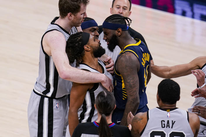 Vis dėlto, šios rungtynės, kuriose kiek trūko sportinės intrigos, turėjo savo aštrų prieskonį, kuomet rungtynėms artėjant prie pabaigos San Antonijaus gynėjas iš Australijos Patrickas Millsas bėgdamas atsitrenkė į Indianos aukštaūgį JaKarrą Sampsoną, kuris sureagavo labai agresyviai. Beįsiplieskiančias muštynes pavyko sustabdyti tik greitai įsikišus abiejų ekipų krepšininkams, suvaldžiusiems karštakošius.