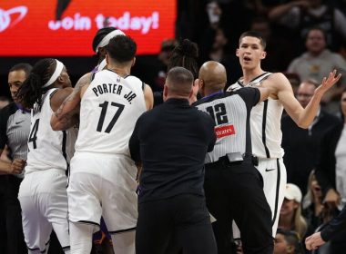 Fynikso „Suns” namuose 106:102 nugalėjo Bruklino „Nets", tačiau rungtynės įsimins ne dėl rezultato. Rusų naujokas Egoras Deminas sukėlė masinį susistumdymą, parvertęs ant parketo Dilloną Brooksą.