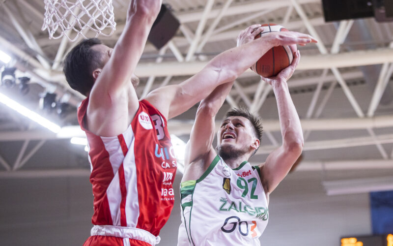 Po kiek daugiau nei savaitės ant parketo sugrįžęs Kauno „Žalgiris“ (13:1) išvargo pergalę Utenoje. Jure Zdovco auklėtiniai išvykos rungtynėse tik po pratęsimo 78:71 (21:16, 15:15, 15:14, 15:21, 12:5) nugalėjo Utenos „Juventus“ (8:6).