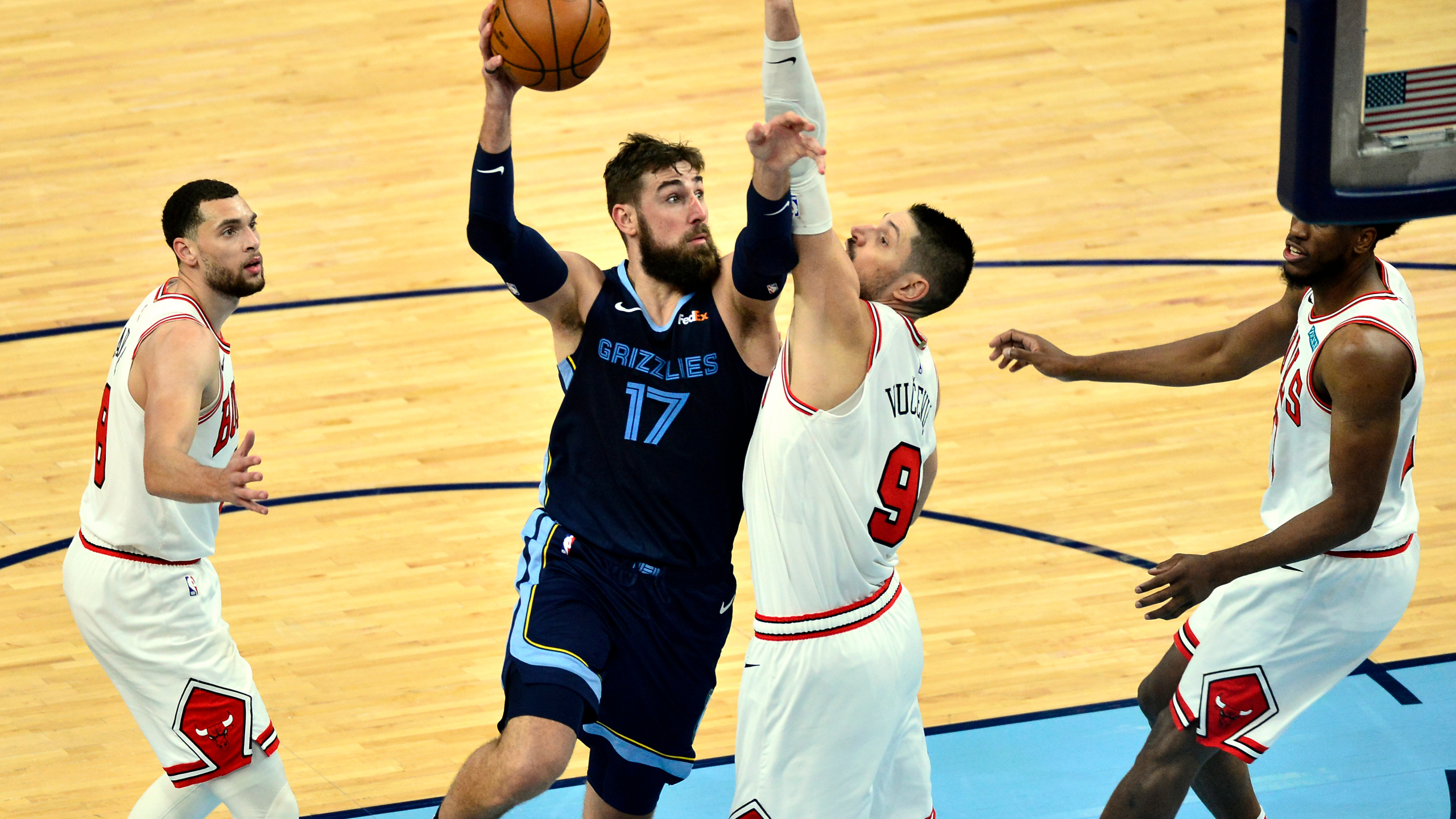 28 metų uteniškis pergalingose rungtynėse ant Memfio „FedExForum” parketo dar sykį suspindo įspūdingu pasirodymu. Per 34 žaidimo minutes JV surinko 26 taškus, realizavęs net 12 iš 14 mestų dvitaškių, pridėjo 14 atkovotų kamuolių ir 3 blokus, o jo vedami „grizliai” patiesė „Chicago Bulls” 101:90.