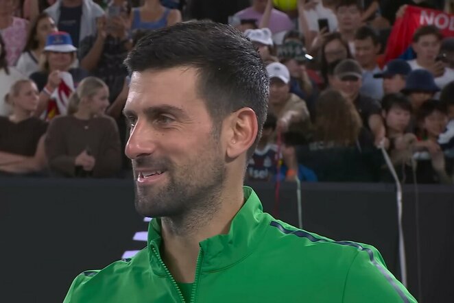 Istorinę pergalę Melburne iškovojęs Djokovičius pajuokavo iš Alcarazo: „Laukiu premijų už jo padavimus”